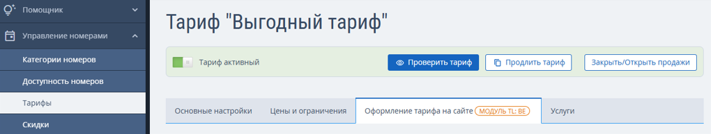 1. Перейдите в раздел «Управление номерами» → «Тарифы».