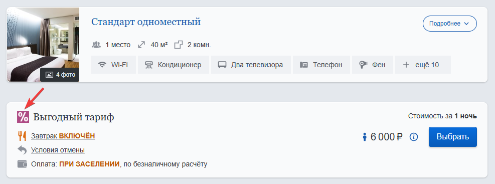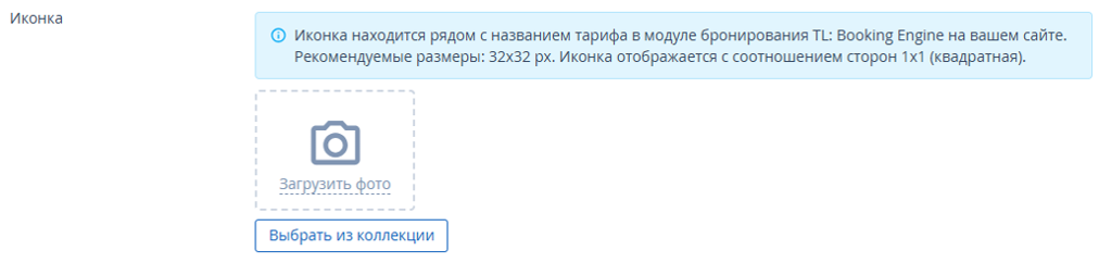 Рекомендуем загружать иконки к тарифам — это привлекает внимание гостей во время бронирования. Иконка отображается в модуле бронирования рядом с названием тарифа.