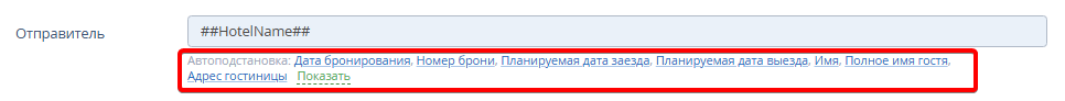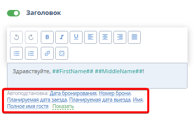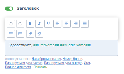 Пункт «Дополнительный текст» Относится к телу письма и содержит дополнительную информацию для гостя.