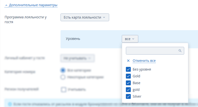 Уровень программы лояльности, при наличии которого гостю будет приходить рассылка.