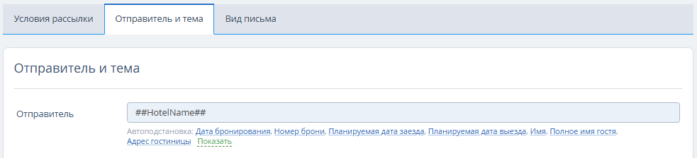 4. Внесите необходимые изменения на вкладках «Отправитель и тема» и «Вид письма». Сохраните изменения.