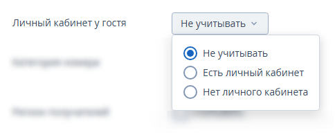 Выберите из раскрывающегося списка наличие личного кабинета у гостя.