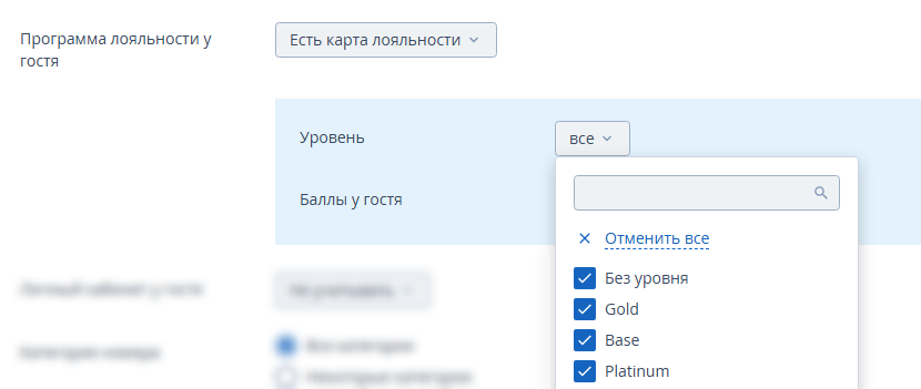 Некоторые категории — отметьте галочкой в раскрывающемся списке необходимые категории номеров.