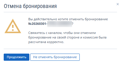 3. В открывшемся окне «Отмена бронирования» нажмите кнопку «Продолжить».