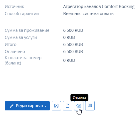 - Отмена бронирования