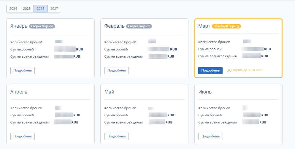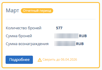 Дополнительно в карточке отчетного месяца выводится дата, до которой необходимо сверить брони.