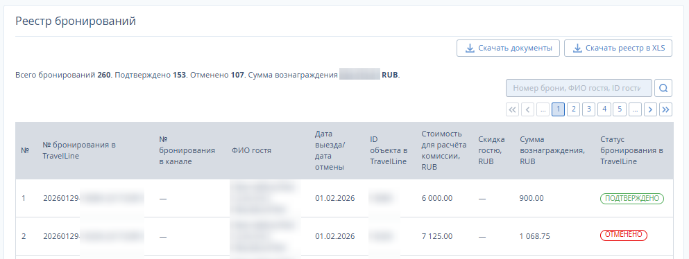 В личном кабинете вам также станут доступны для скачивания «Реестр бронирований» и документы за отчетный месяц.