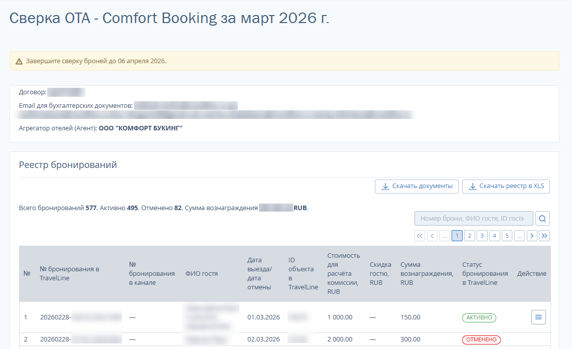 После завершения сверки в сроки, указанные в договоре между вами и агрегатором каналов Comfort Booking, на вашу электронную почту будет отправлен «Реестр бронирований».